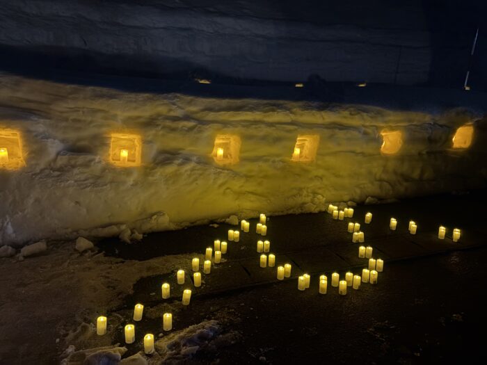 3mを超える雪壁に、ほのかな灯りがやさしく照らします。