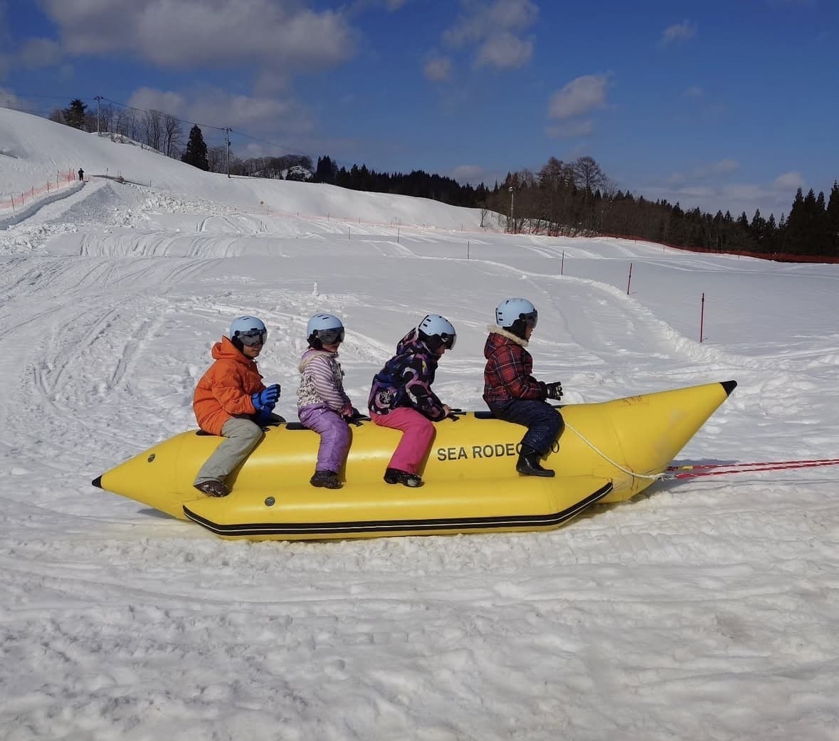 「はでやら」とは、雪原や雪野原のことを、地方の方言で表現したものです。四ヶ村の棚田の地形と日本有数の豪雪が作り出す、ここにしかない「はでやら」で思いっきり雪遊びを楽しめます。バナナボートやスノートレッキングを楽しみながら思い出の雪フォトをぜひ!